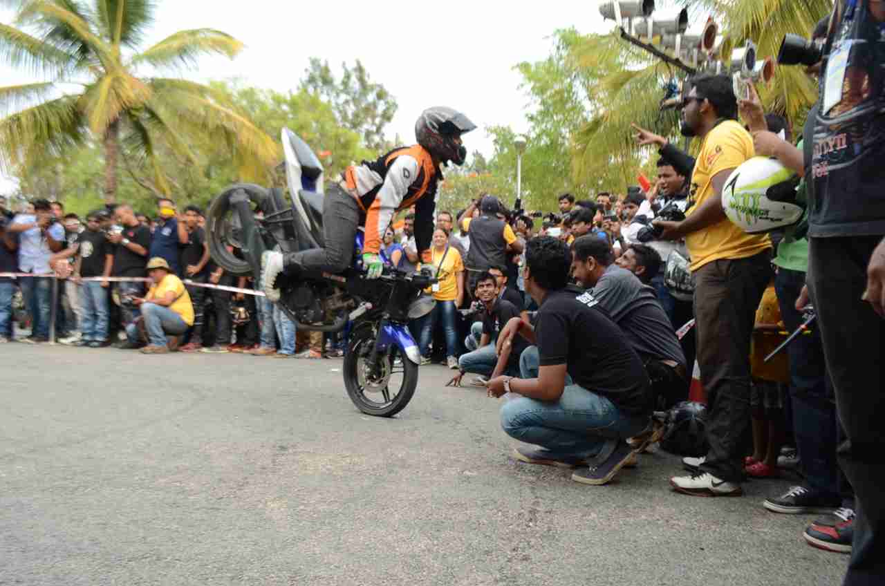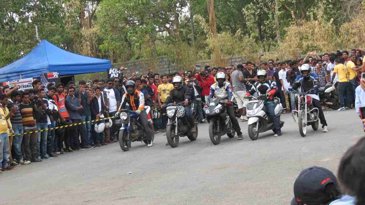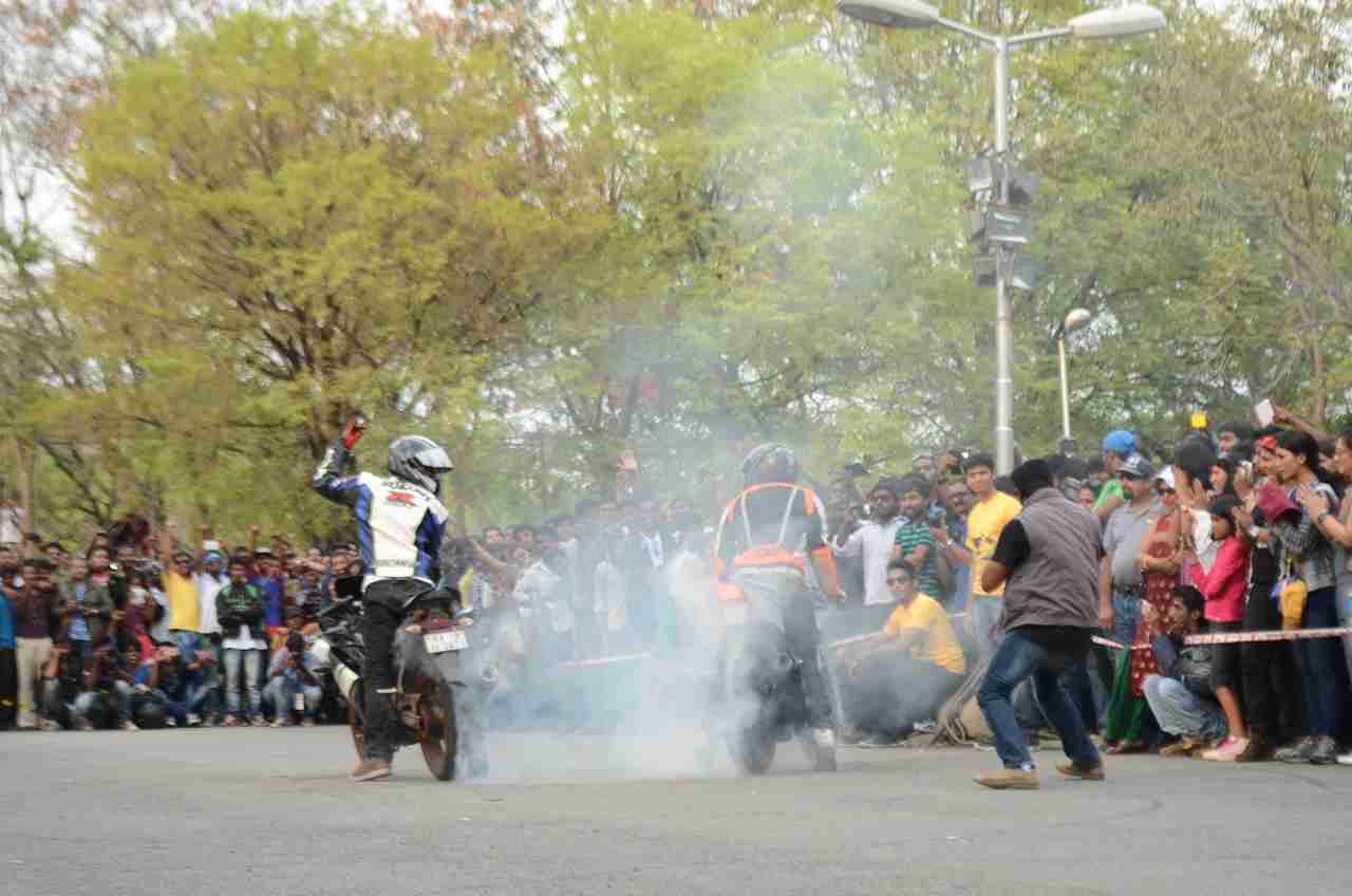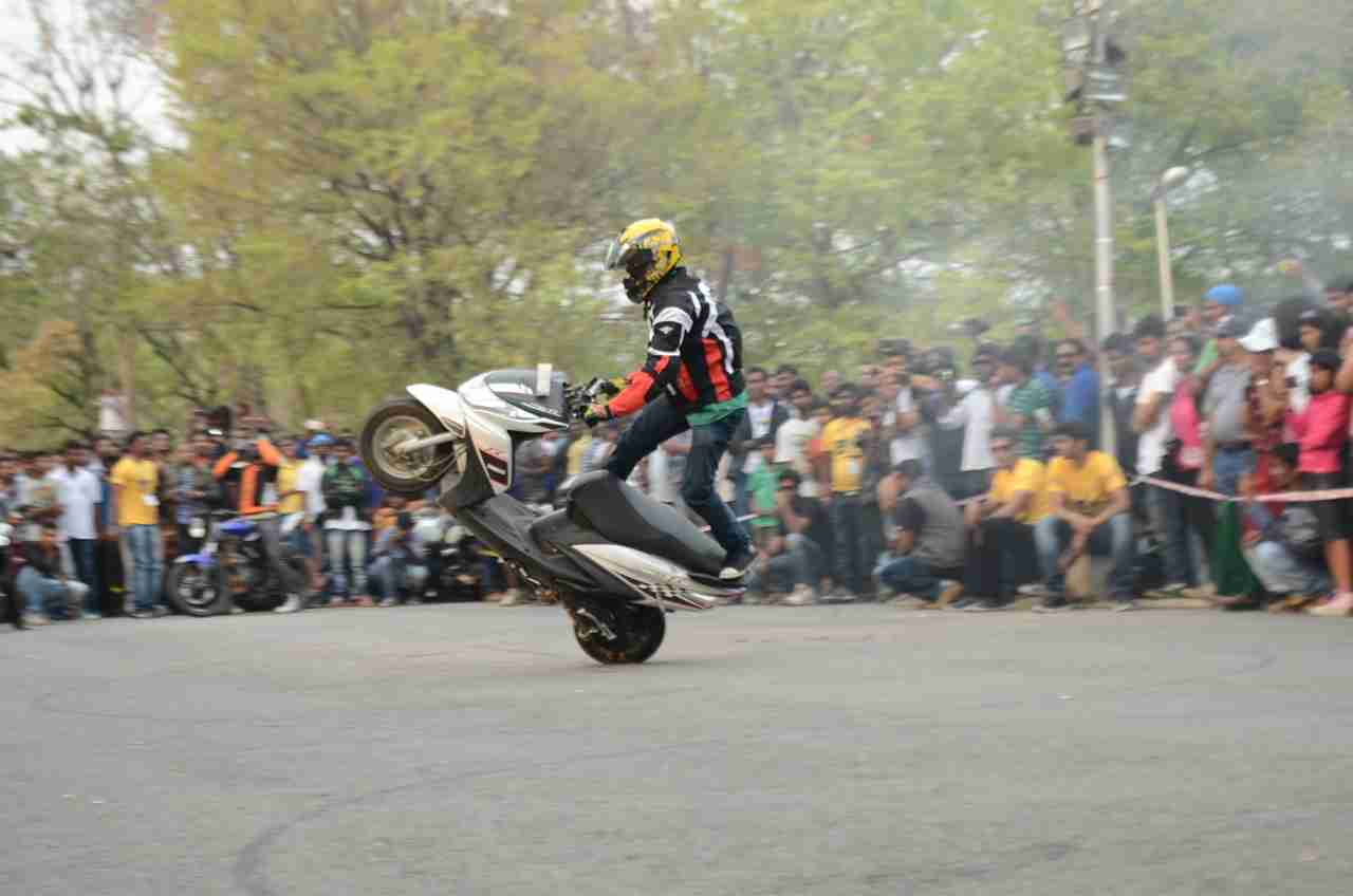 Events this year included a rock show by Dark Light, a stunt show by Zero Gravity and Team Young Bloodz all of which kept the 1500 odd bikers from 39 groups at their feet and asking for more. There also was a felicitation ceremony for bikers who have made their permanent mark on the community either by battling all odds or doing what they do best so very well that they are an inspiration to the rest of us. These bikers included Bindu Reddy – Founder at Hop On Gurls, Phanikar HP – a hard core tourer, Mr. Murthaza Junaid – Founder at Art of Motorcycles, Joel Joseph – a very popular tuner and Navneet Bhardwaj – a biker who has not let his personal misfortune of an hearing impairment interfere with his biking. Other attractions at the event included a dyno set up by Race Dynamics, Product displays, MotoGP screening and a barbecue.
