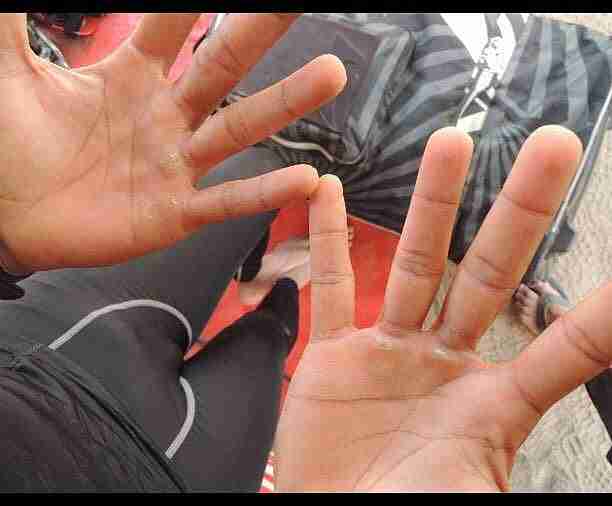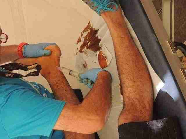 Santosh has a hairline fracture on his toe from previous days crash continues to ride with pain medications and some injections.