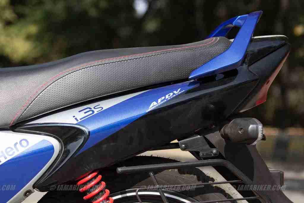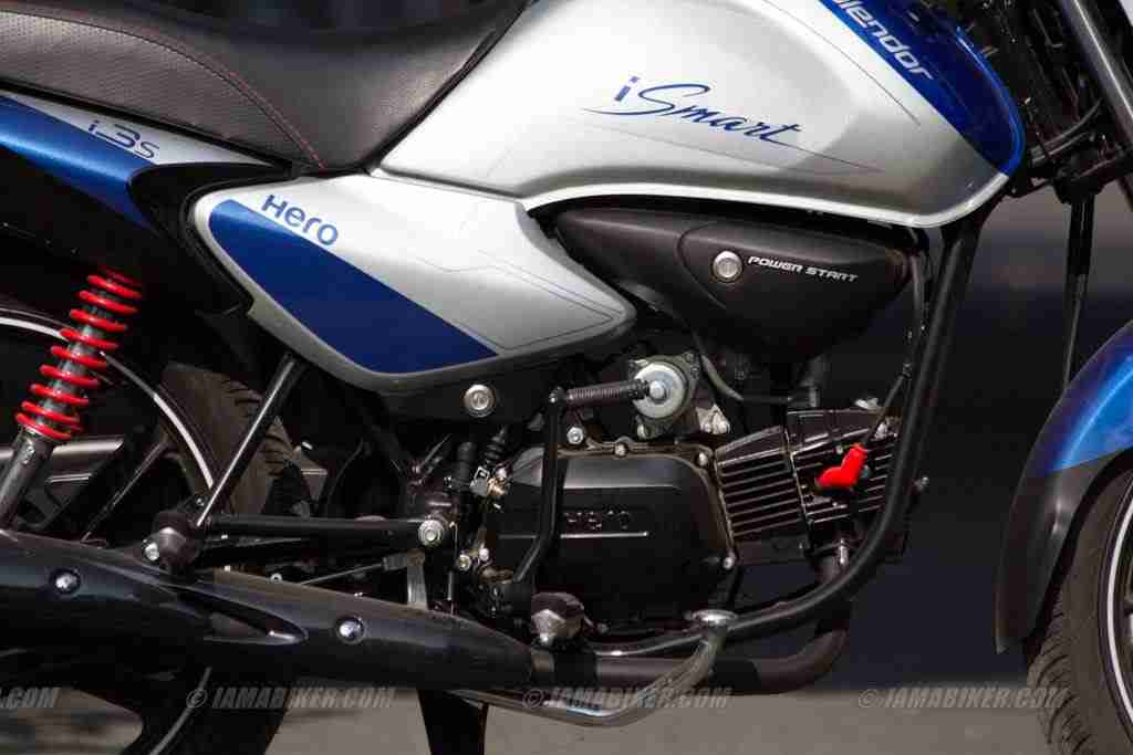 The Hero Splendor iSmart features the same engine that has been doing duty on the Splendor series for quite a bit. It has the proven reliability and what Hero has done over the years is to fine tune it for even more efficiency. The 97.2 cc engine is smooth and responsive and can do a top speed of about 90 kmph. The gearing and engine power makes it well suited for city commute. The first two gears are kinda short, this enables it to be quite peppy off the line. Even with a pillion you can get going without much of a hassle. In top gear, ie. the fourth gear, you can be at a comfortable 50-60 kmph and thats probably all you should ever try. After that naturally the small engine is quite stressed. Company claims a mileage of 90+ kmpl for the Splendor iSmart, on our test which was of total city riding, we got a respectable 72 kmpl mileage. Coming to the i3S tech that the Splendor iSmart comes with, its pretty simple. Once switched on via the blue switch on the right switchgear, whenever you stop the bike, say at a traffic signal and pop the gear to neutral, the bike automatically switches off after 5 seconds. You can restart it by just pulling in the clutch. Essentially once you get used to it in the city traffic it does make life a bit more comfortable. But honestly we would have preferred an engine kill switch and that would be it. Check out the a demonstration video below on how the i3S techon the Splendor iSmart works.