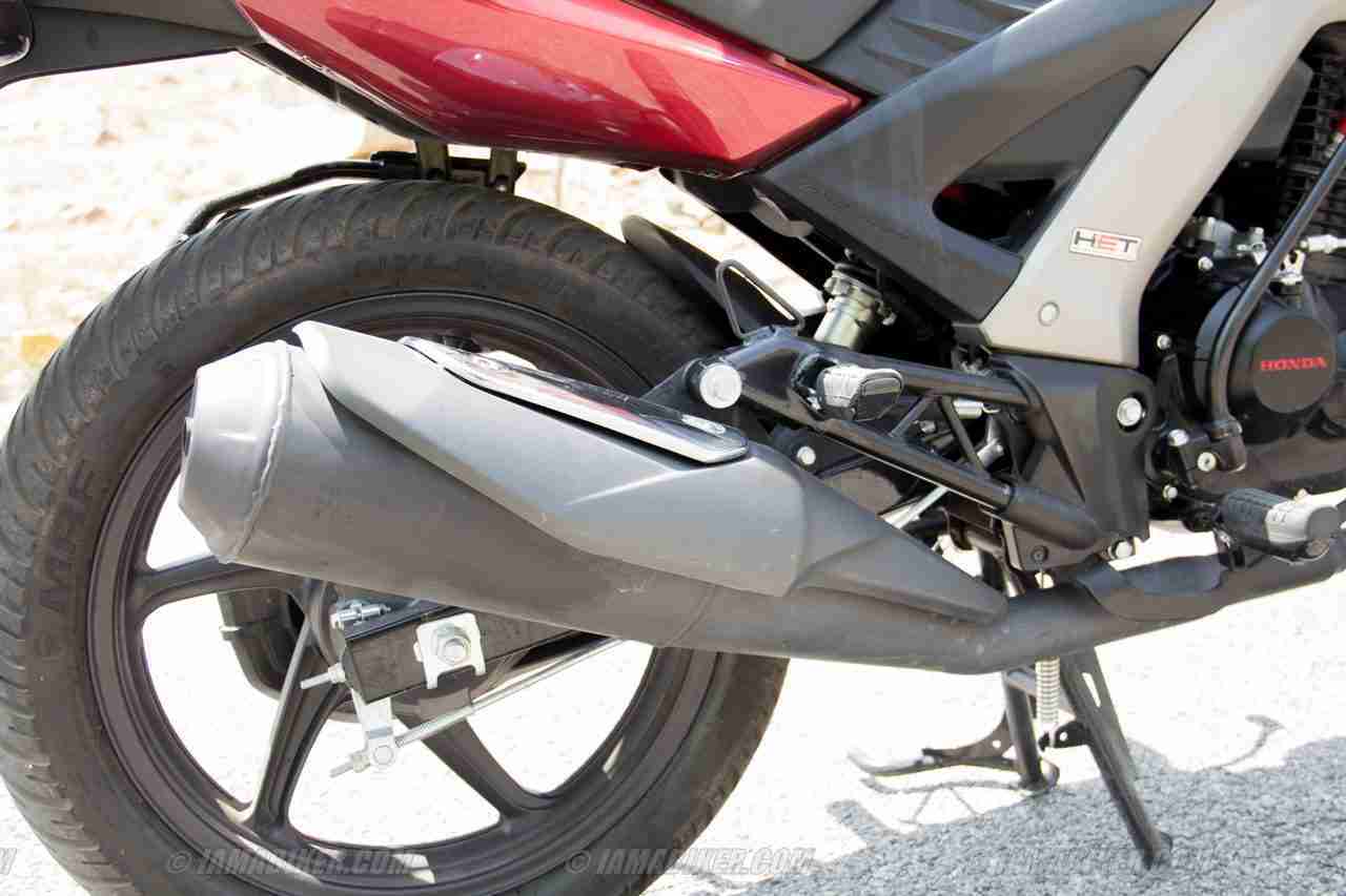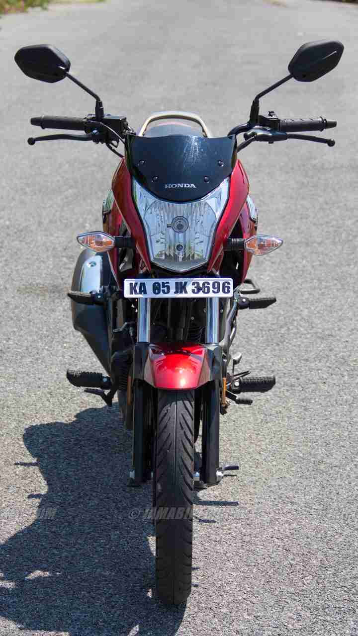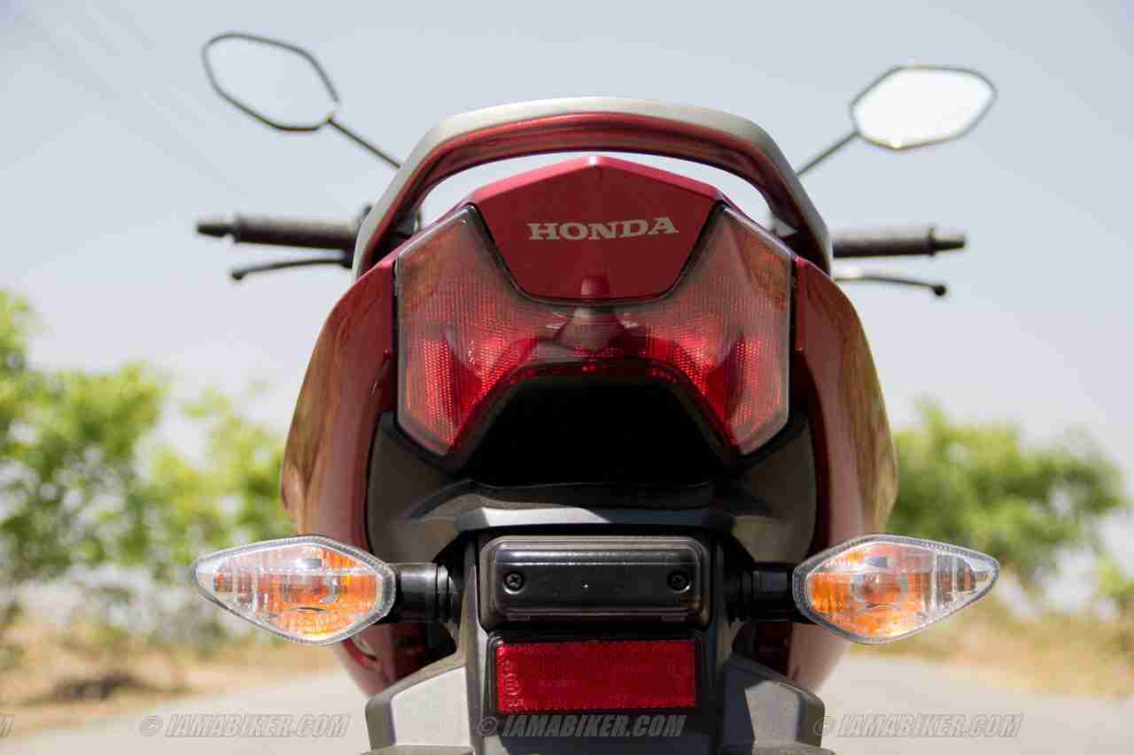 The Honda CB Unicorn 160 CBS weighs 135 kgs and is a light bike, quite surprising as it looks big. It is quite nimble and has a very short turning radius, very helpful in city riding. It is stable and planted while riding and you feel confident and in control at all times. The relaxed handlebar position also help in easy maneuvering. Suspensions are quite good, typically these days most bikes come with a firm rear suspension to enhance handling. Honda have managed to find that sweet spot, the rear mono shock soaks up bumps quite well and makes it quite a comfortable ride. Coming to the brakes, we tested out the CBS version. CBS stands for Combined Braking System. Basically what that does is, when you apply the rear brake, the CBS system applies a bit of the front brake as well to ensure proper braking. Now is it really needed? Because a whole lot of the braking is done by the front and actually if the system was in the opposite direction as in, a bit of the rear is applied when you apply the front makes a bit more sense on a bike (Honda’s big bikes with CBS work in this fashion). On a scooter, yes, it made sense. But at the same time CBS or not the brakes on the Honda CB Unicorn 160 are good. The 240 mm front disc really gets the job done and combine that with the rear drums and things come to a halt pretty quick. But we really hoped to see a rear disc.
