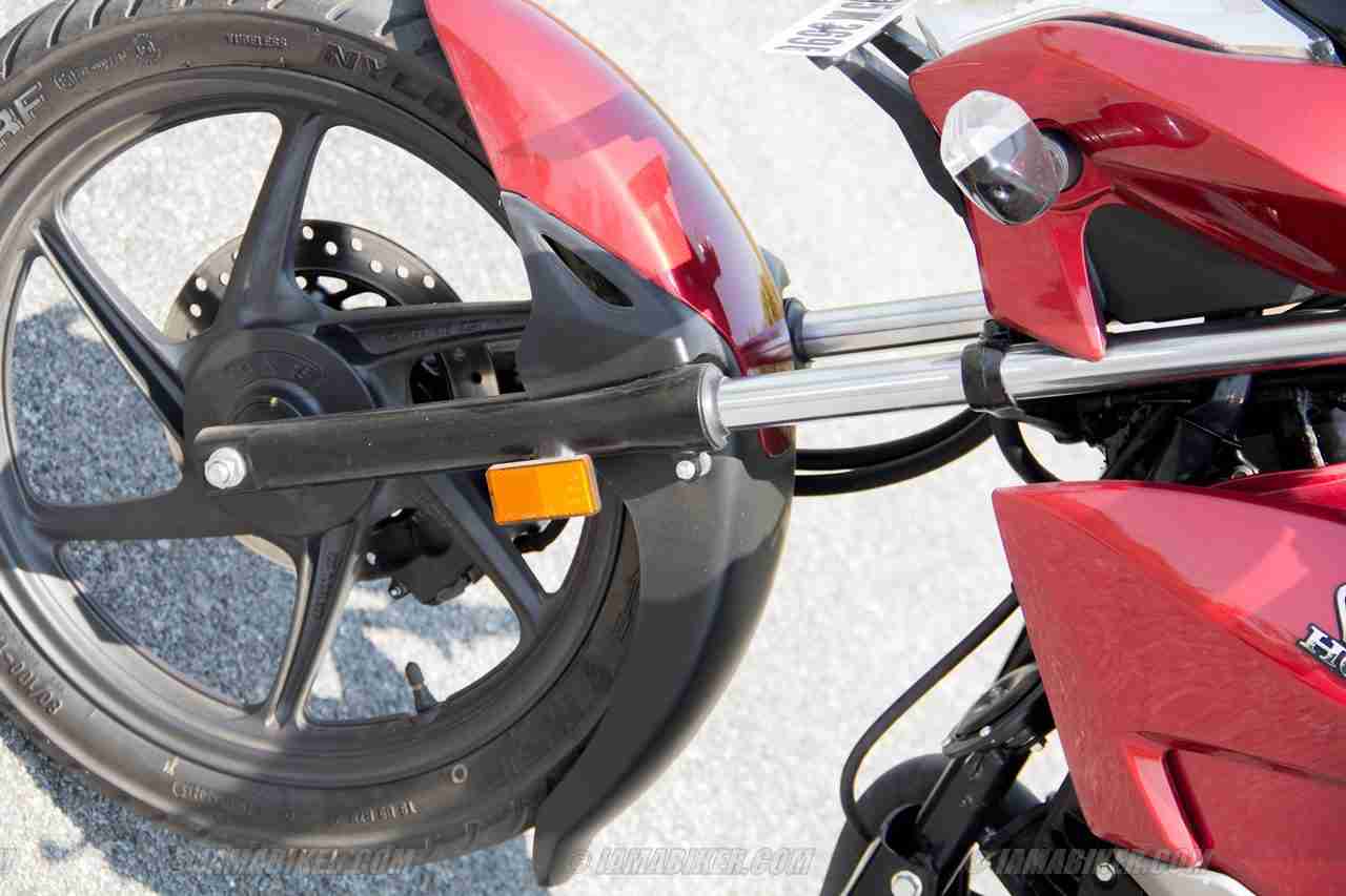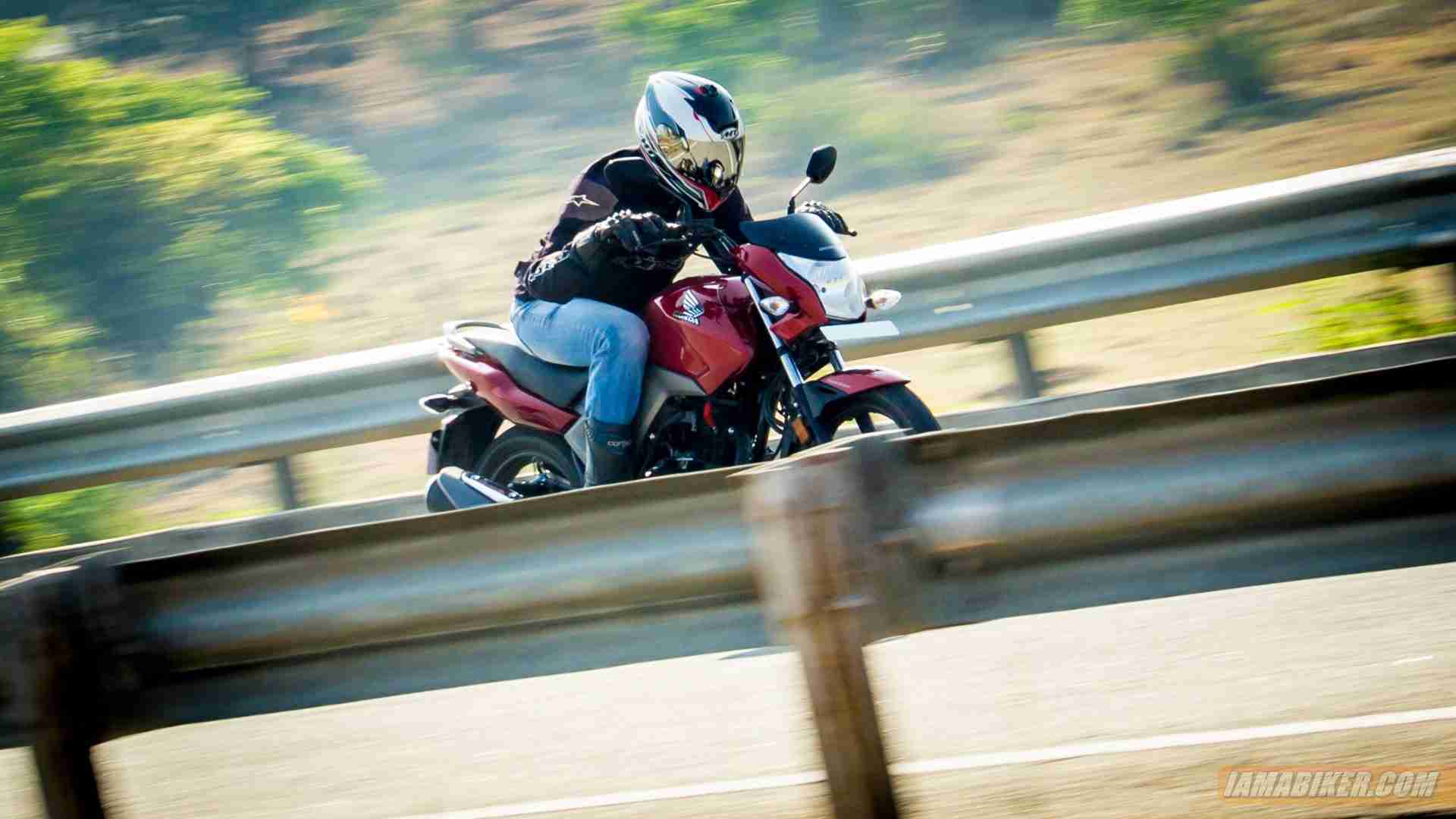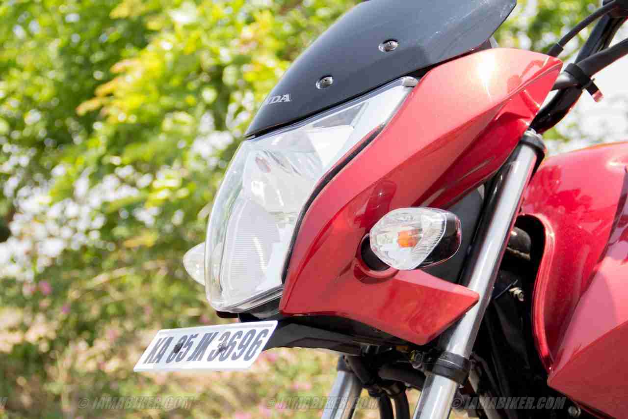 The Honda CB Unicorn 160 CBS weighs 135 kgs and is a light bike, quite surprising as it looks big. It is quite nimble and has a very short turning radius, very helpful in city riding. It is stable and planted while riding and you feel confident and in control at all times. The relaxed handlebar position also help in easy maneuvering. Suspensions are quite good, typically these days most bikes come with a firm rear suspension to enhance handling. Honda have managed to find that sweet spot, the rear mono shock soaks up bumps quite well and makes it quite a comfortable ride. Coming to the brakes, we tested out the CBS version. CBS stands for Combined Braking System. Basically what that does is, when you apply the rear brake, the CBS system applies a bit of the front brake as well to ensure proper braking. Now is it really needed? Because a whole lot of the braking is done by the front and actually if the system was in the opposite direction as in, a bit of the rear is applied when you apply the front makes a bit more sense on a bike (Honda’s big bikes with CBS work in this fashion). On a scooter, yes, it made sense. But at the same time CBS or not the brakes on the Honda CB Unicorn 160 are good. The 240 mm front disc really gets the job done and combine that with the rear drums and things come to a halt pretty quick. But we really hoped to see a rear disc.