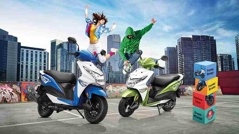 The Honda Dio is the original sporty scooter that set many hearts throbbing and getting in queue to own one. In 2012 the sharp and minimalistic lines of the this scooter was replaced with a slightly more curvy design. Initially we were sad of the radical design change but soon enough the new design actually started to grow on us. It was more beautiful in a totally different way and was a rather unique design that still appealed to the youth. Last year Honda updated their entire scooter fleet with HET ( Honda Eco technology) and this had a positive impact on the mileage the Dio delivered. For 2015 Honda have decided to update the colour options available for the Dio and we must say they look good. All four colour options for the Honda Dio are dual tone ones and enhance the sporty appeal of the scooter. Namely the new colour options are Jazzy Blue Metallic, Sports Red, Candy Palm Green and Black. The ex-showroom price of the new Honda Dio is at Rs. 50,505/- for Bangalore.