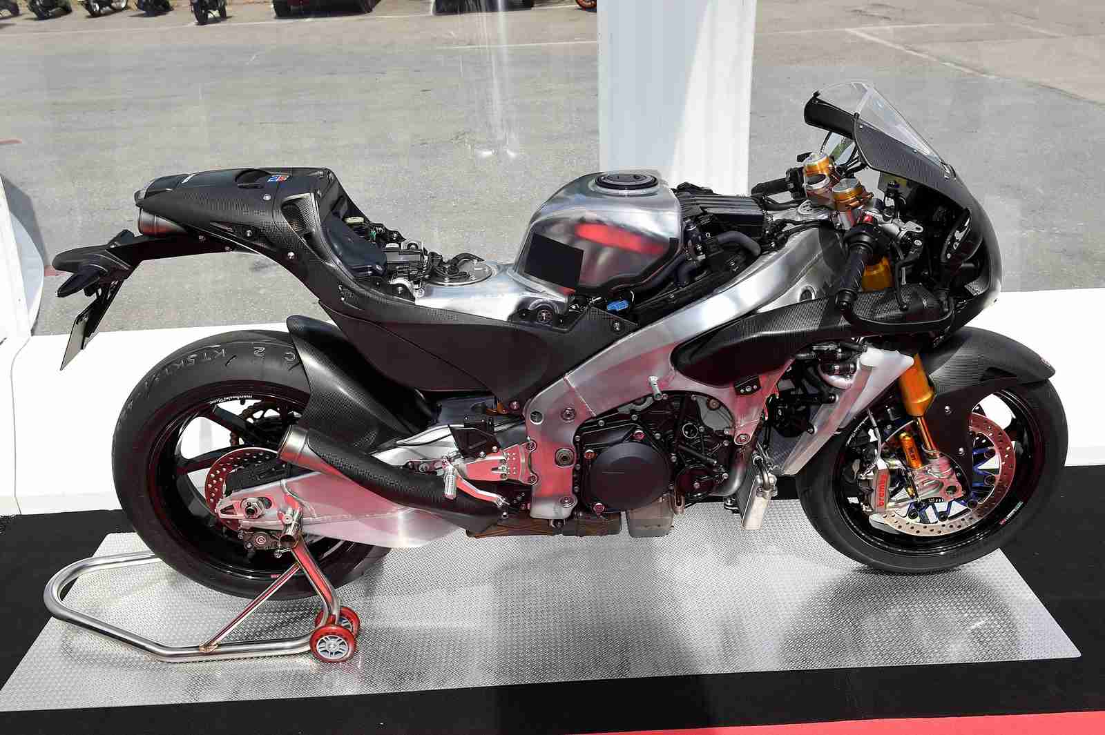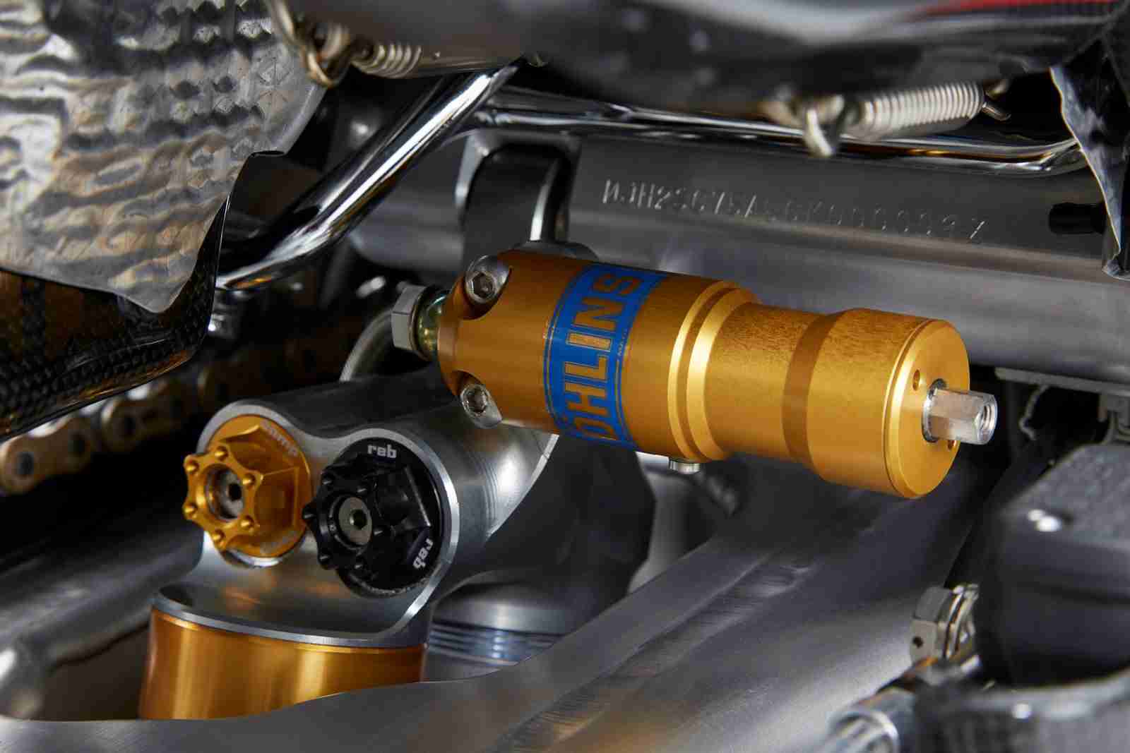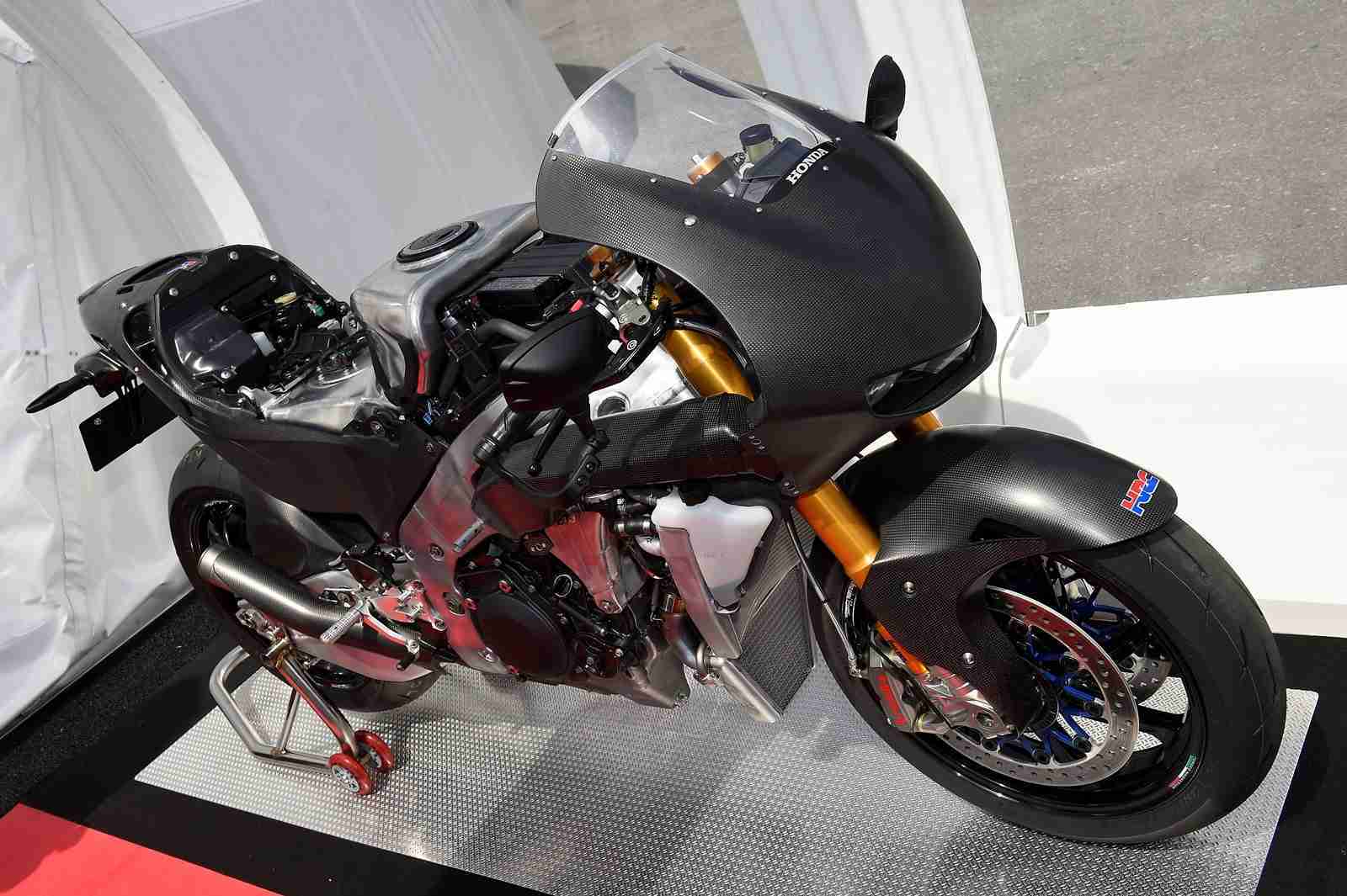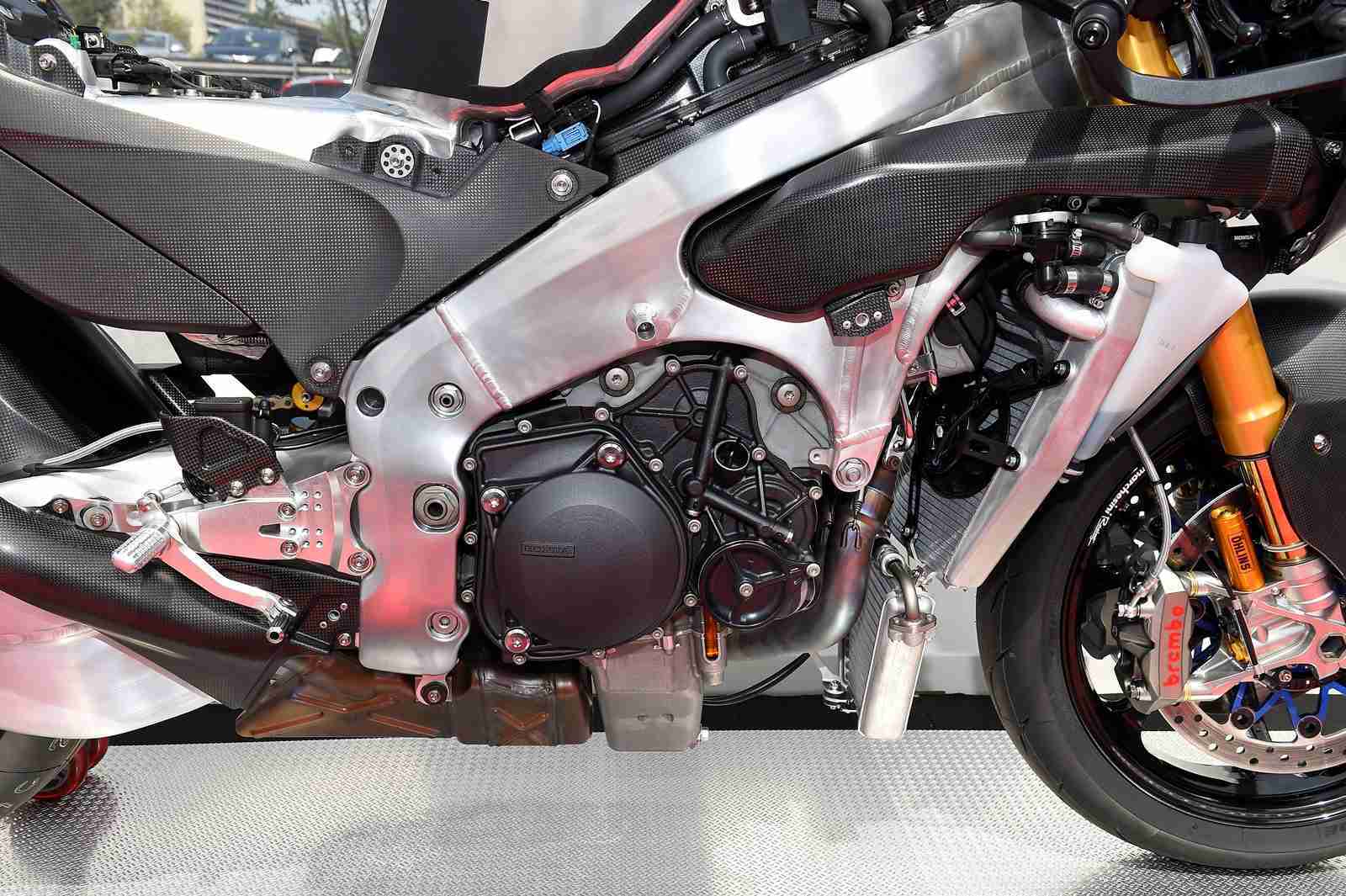 The Honda RC213V-S was built as a road going version of the RC213V prototype. Which means a lot of the actual prototype parts has made way for some not so excotic parts. The pneumatic valves are replaced by the regular coil springs and the very special seamless transmission is replaced by a conventional gearbox. Front discs are stainless steel and then the usual road going “must haves” have been added – Headlight, Taillight, License plate lamps, Front and rear turn signals, Rearview mirrors, Speedometer, Muffler with a catalyst, License plate holders, Horn, Honda Smart Key, Self starter and of course a side stand. All these additions means that now the Honda RC213V-S weighs 170 kgs dry and has an approx wet weight of 190 kgs wet. But this is not the most disappointing number yet.