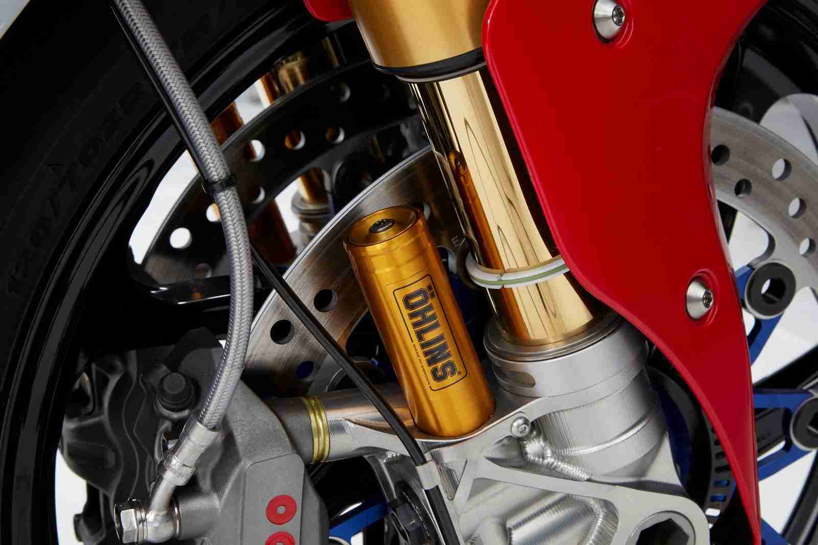 Depending on which market you are buying the Honda RC213V-S from, the max power available in road going trim is, 159 Ps for the Europe and Australia version, France version makes 102 Ps, Japan version makes 70 Ps and the U.S. version gets 101 Ps. The only way to see it making some decent power is with the sports kit, which needs to be bought extra. This reduces the dry weight by about 10 kgs and power output is increased to 210 Ps. Honda have not really clarified anything about the chassis, but we expect similar spec one to the RCV1000R in the MotoGP open category. The only place that seems to really show some MotoGP tech is in the electronics department. The Honda RC213V-S gets five ride modes, traction control system based on the GP bikes, engine braking control system, a quickshifter, and an inertial measurement unit (IMU).