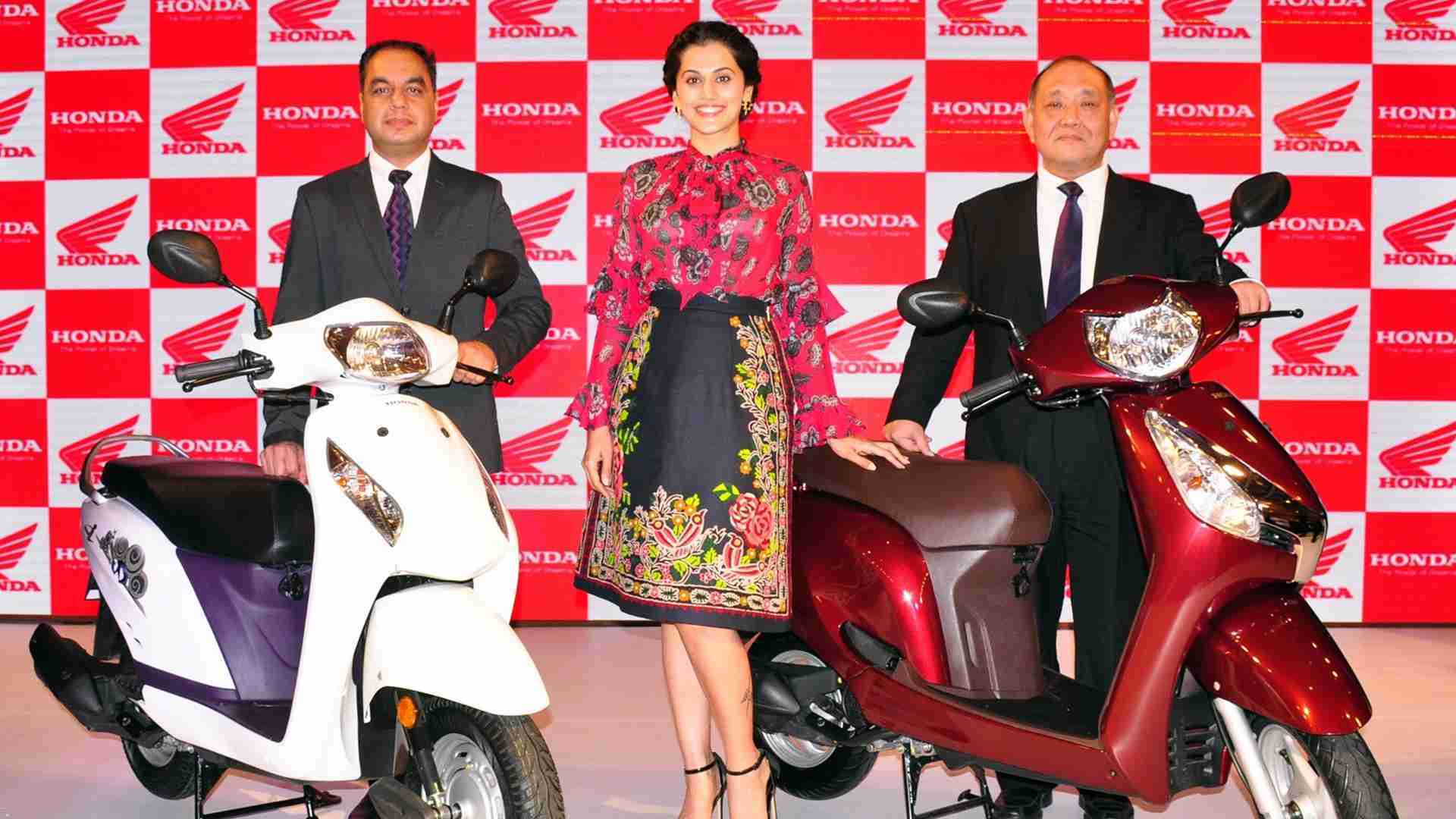 Honda scooters are immensely popular in India and to continue this market domination, Honda has announced 2015 versions of the Activa i and the Aviator. The 2015 versions are basically updates in colour options and mechanically they remain the same. With the launch of the updated Aviator and Activa i, Honda has now completed 8 launches this year. Honda also used the launch event to announce their new brand ambassador for the Activa i scooter range. Actress Taapsee Pannu who is a popular face across India will now be associated with the brand. Speaking on the launch occasion of the Honda scooters, Mr. Keita Muramatsu – President & CEO HMSI said that currently India is the second largest market for Honda. One in every four Honda two wheelers sold across the globe is from India. Currently Honda is targeting India to be its biggest market in the next few years. He also took the opportunity to say that their new factory in Gujarat will be the worlds biggest scooter only factory and the same will be active by 2016.