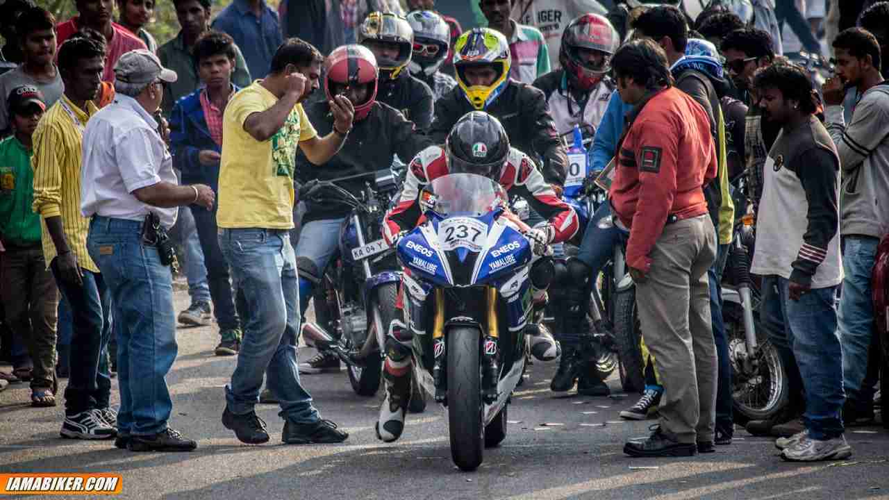 With every passing year the Nandi Hill Climb has become a nightmare to manage and this year it probably was the worst ever. The Nandi Hill Climb happens on the single lane road uphill. The hilltop is a popular go to place for the people in Bangalore and sees a decent amount of regular traffic and that number multiplies many folds when you have the Hill climb scheduled. So basically how the race happens is, traffic is halted for about an hour, a few racers are timed and then traffic opened and the whole process is repeated. It all seems simple but it is not. The huge number of people gathered are everywhere and there are never enough amount of organizers to handle an event of such magnitude. You have people on the track, walking across the track, blocking you when you are about to launch and even right at the corner where you are really pushing a bike or a car. One mistake from the rider/driver and all these people are in for some real danger. All these are distractions for the participant as well. Just imagine a fast corner going into a hairpin turn, you are braking hard, looking at the entry and you see a bunch of guys having a beer two meters next to the tight entry. Should I go on?
