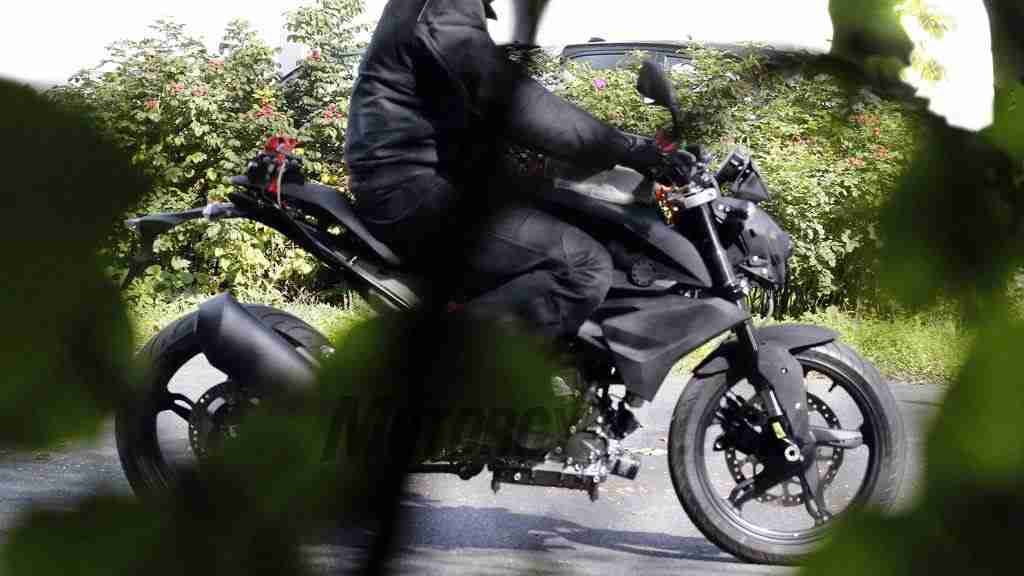 The TVS BMW collaboration has its first progeny. Earlier when TVS BMW announced their plans to work together, they also did mention that their first aim will be to create a multiplatform machine in the sub 500cc segment. By multiplatform they meant something similar to what KTM is doing. Basically a single platform that can evolve from a naked street fighter to a full faired machine also one that can hold different engine capacities. And what we have here seems to be just that. A naked street fighter in the making. There is a small resemblance to Draken concept that TVS has showed at the Auto Expo 2014, but a lot, especially mechanically is different.