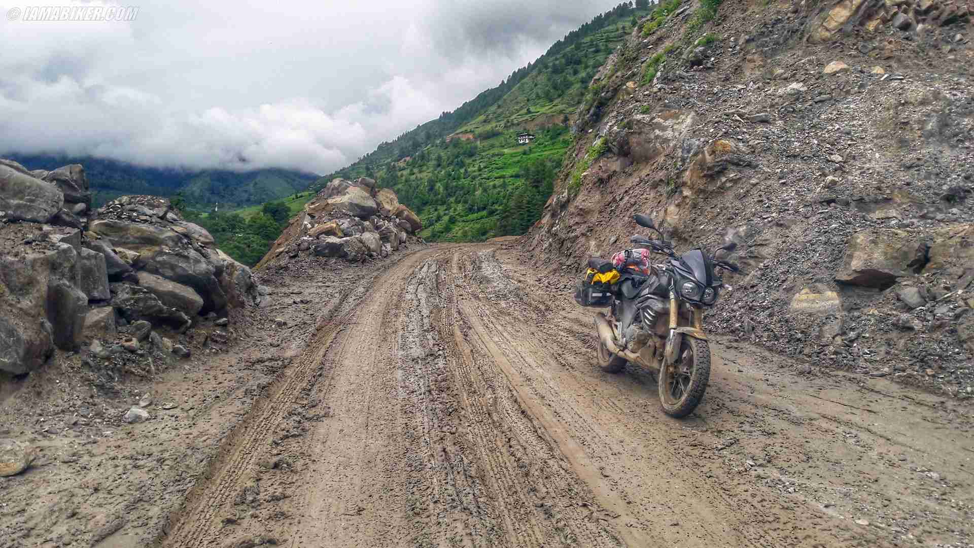 As I entered Punakha, the slush fest began and did not end for the next three days until Tashigang. It was a proper ankle deep slush because of which I kept sliding all over the place and had to ride slowly. Luckily, the engine and gear box of the Mojo were not affected by these roads and took it well – this kept me going.