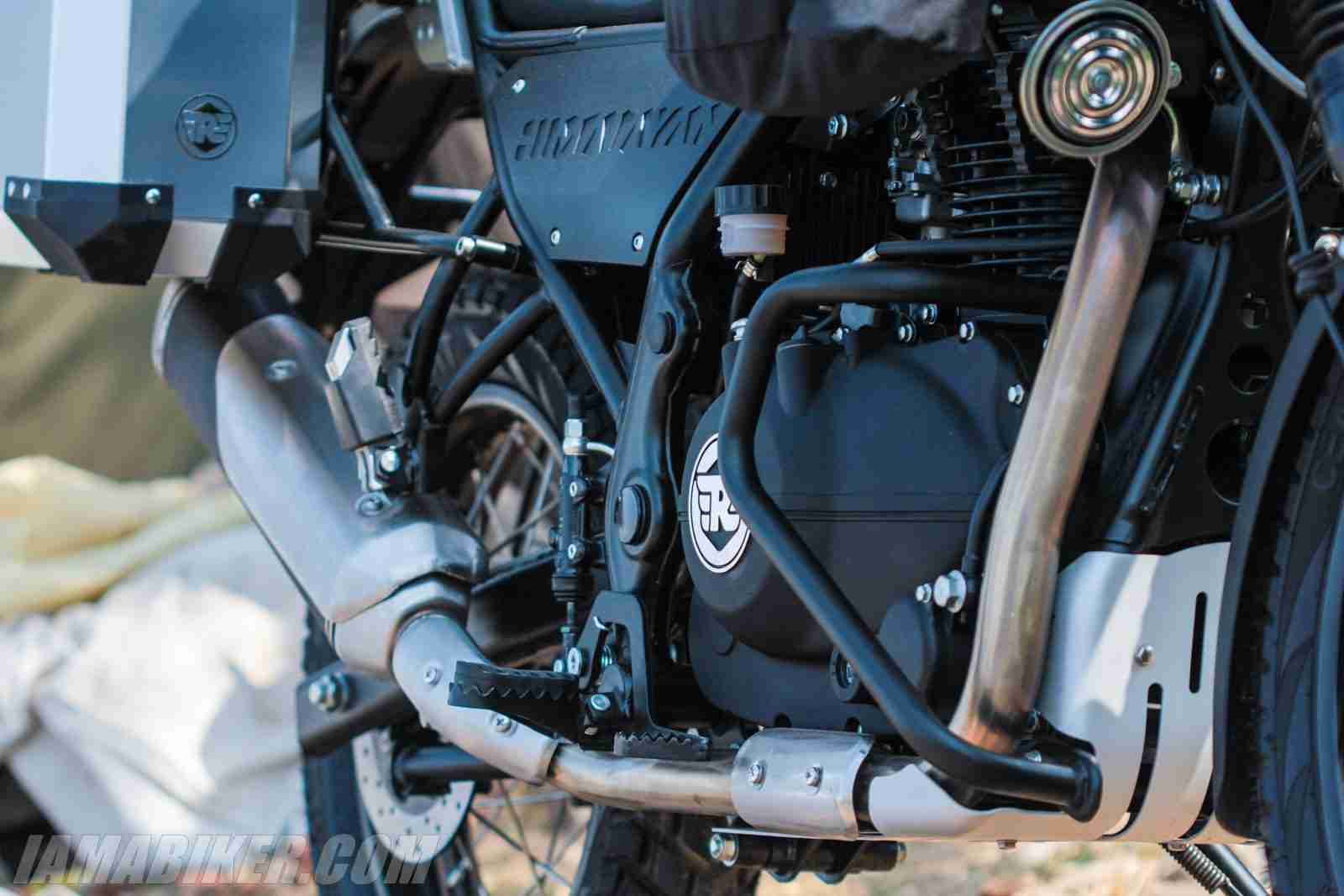 What we did not know was the exact specifications of the new LS400 engine. This all new single cylinder engine that finally joins the overhead cam family has a capacity of 411 cc. It produces 24.5 HP at 6500 RPM and 32 Nm at 4000 RPM. Royal Enfield says that almost 70 percentage of this torque would be available from as low as 2500 RPM. The gearbox is a 5 speed one and for now the engine will remain a carbureted one. The bike weighs 182 kgs and has a fuel tank capacity of 15 litres. Now weight wise we were kind of expecting a lighter machine but Royal Enfield promises us that this would not be a hinderance even fully loaded. The tyres are 90/90 21 inch ones at the front and 120/90 17 inch ones at the rear and are provided by CEAT. The seat height of 800mm should also be quite a boon for riders of all heights.