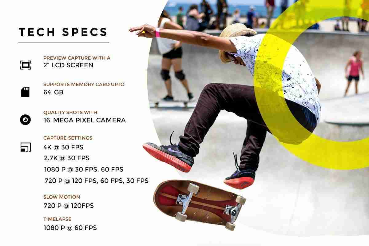 - Shoots professional (4K 30fps) (2.7K 30fps) (1080P 60/30 fps) (720P at 60/30 fps) videos with 16MP photos at up to 30 frames per second for incredible photos.