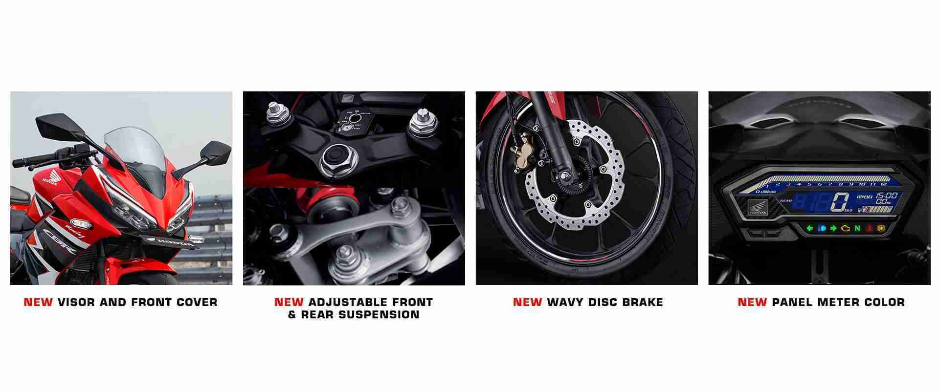 Internationally the Honda CBR150R receives a bunch of new minor updates. Its starts with a restyled LED daytime running light pattern and new colour options. There is a slightly revamped instrument console showing gear position and other details. Emergency stop signal is another new feature where the stop light is immediately activated upon hard braking.