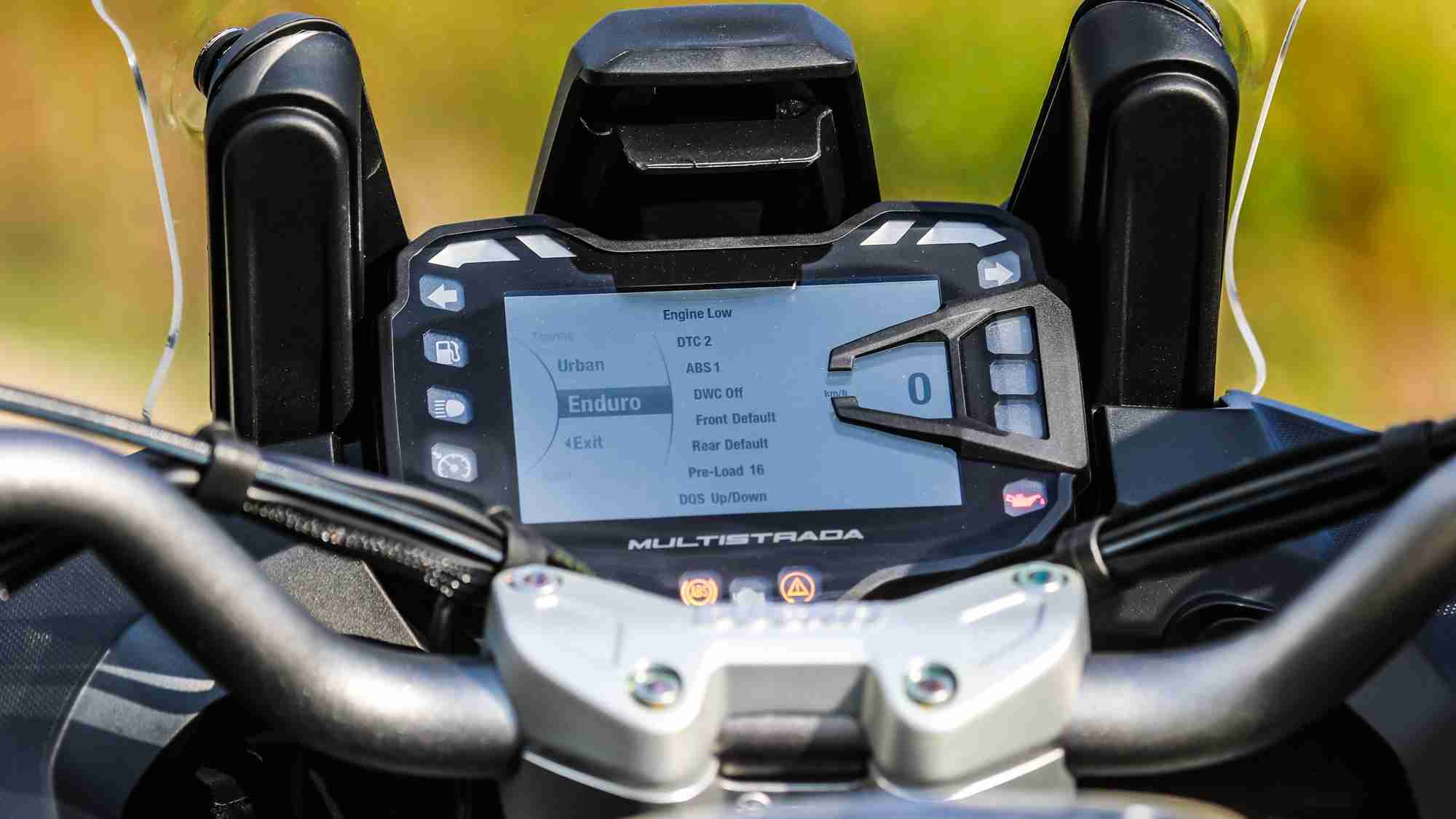 The Multistrada 1260 Enduro is primarily designed to be more raw and hardcore when it comes to adventure riding. To help the rider utilise the maximum out of this machine, Ducati has provided an updated electronics package that includes a six-axis IMU, cornering ABS, four tailorable riding modes (Urban, Sport, Touring and Enduro), Ducati Wheelie Control, Ducati Traction Control, and Vehicle Hold Control (hill-hold assist). There’s even the Skyhook suspension package which allows you to change the suspension settings. Talking about the suspension, Ducati has reduced the suspension travel on the Multistrada 1260 Enduro by 15mm.
