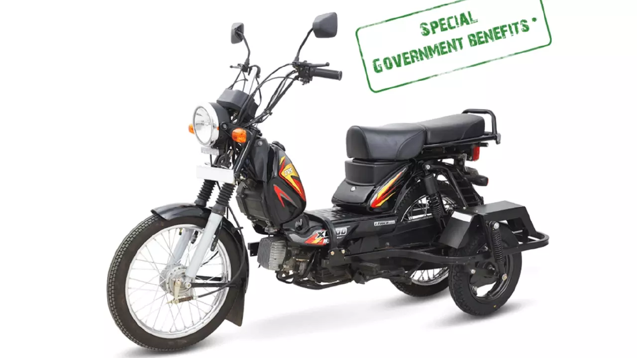 The entire retro-fitment kit has been designed by TVS itself which means that it must have gone through some proper tests and that its design must be safe to use. The kit uses six mounting points for its fixture onto the XL100. The wheels have fenders made up of thick 16-in gauge sheet metal. The kit also has a proper suspension setup, space to store crutches, and footrests for a pillion.