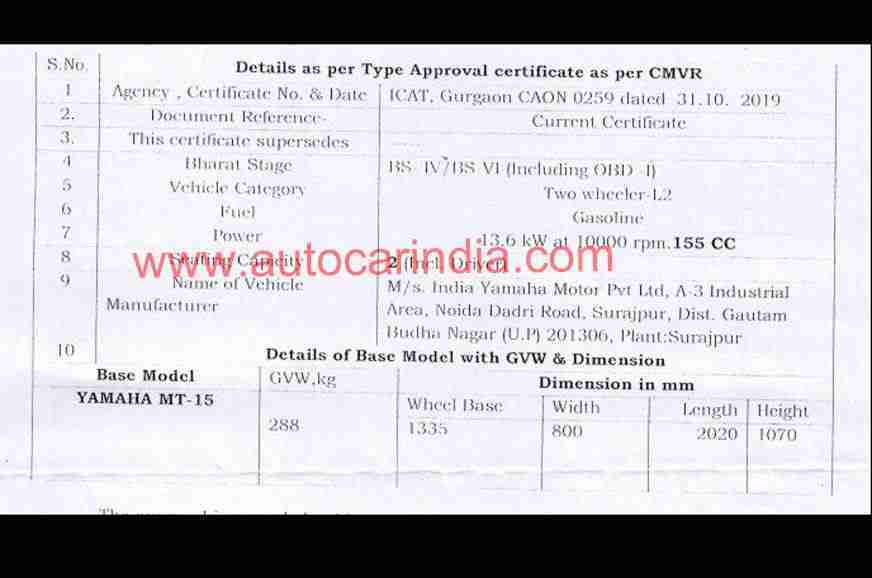 BS6 Yamaha R15 V3, which was launched in December 2019, produces 18.6 bhp of max power and 14.1 Nm of peak torque. These figures are slightly low when compared to that of the BS4 model (19.3 bhp and 14.7 Nm). And since both the R15 V3 and Yamaha MT-15 have the same engine, it was believed that the latter would also have the same power. However, as per a leaked document, that’s not the case.